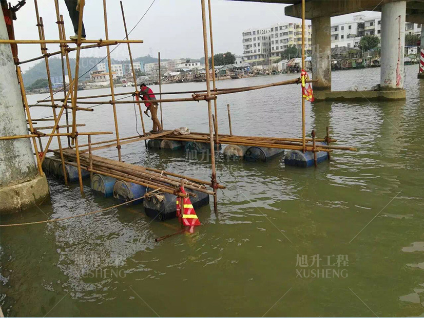 我公司對(duì)其進(jìn)行加固維修改造,包含T梁修補(bǔ)、水下樁基礎(chǔ)加固、補(bǔ)裂縫、PLC電腦同步頂升橡膠支座更換、伸縮縫更換。