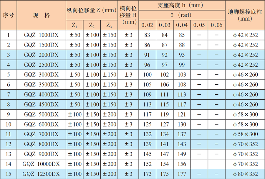 5.1 單向活動(dòng)支座 GQZ-DX 結(jié)構(gòu)示意圖見(jiàn)圖 1,其規(guī)格系列見(jiàn)表 1。
