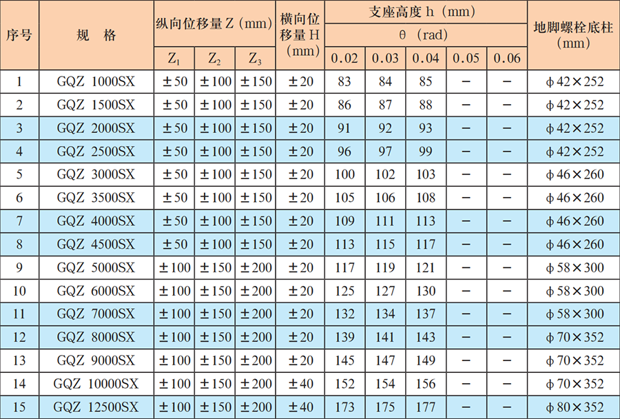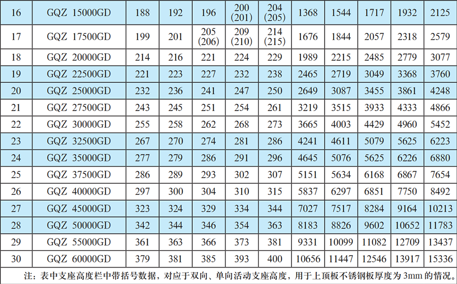 表 2 雙向活動(dòng)支座規(guī)格系列