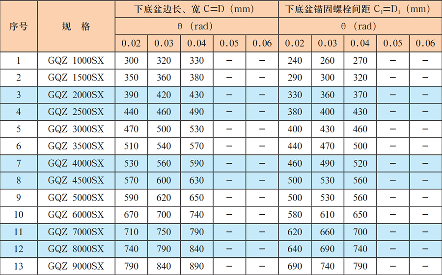 C1、D1——下底盆錨固螺栓間距,單位為毫米(mm)